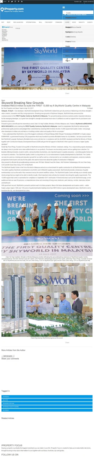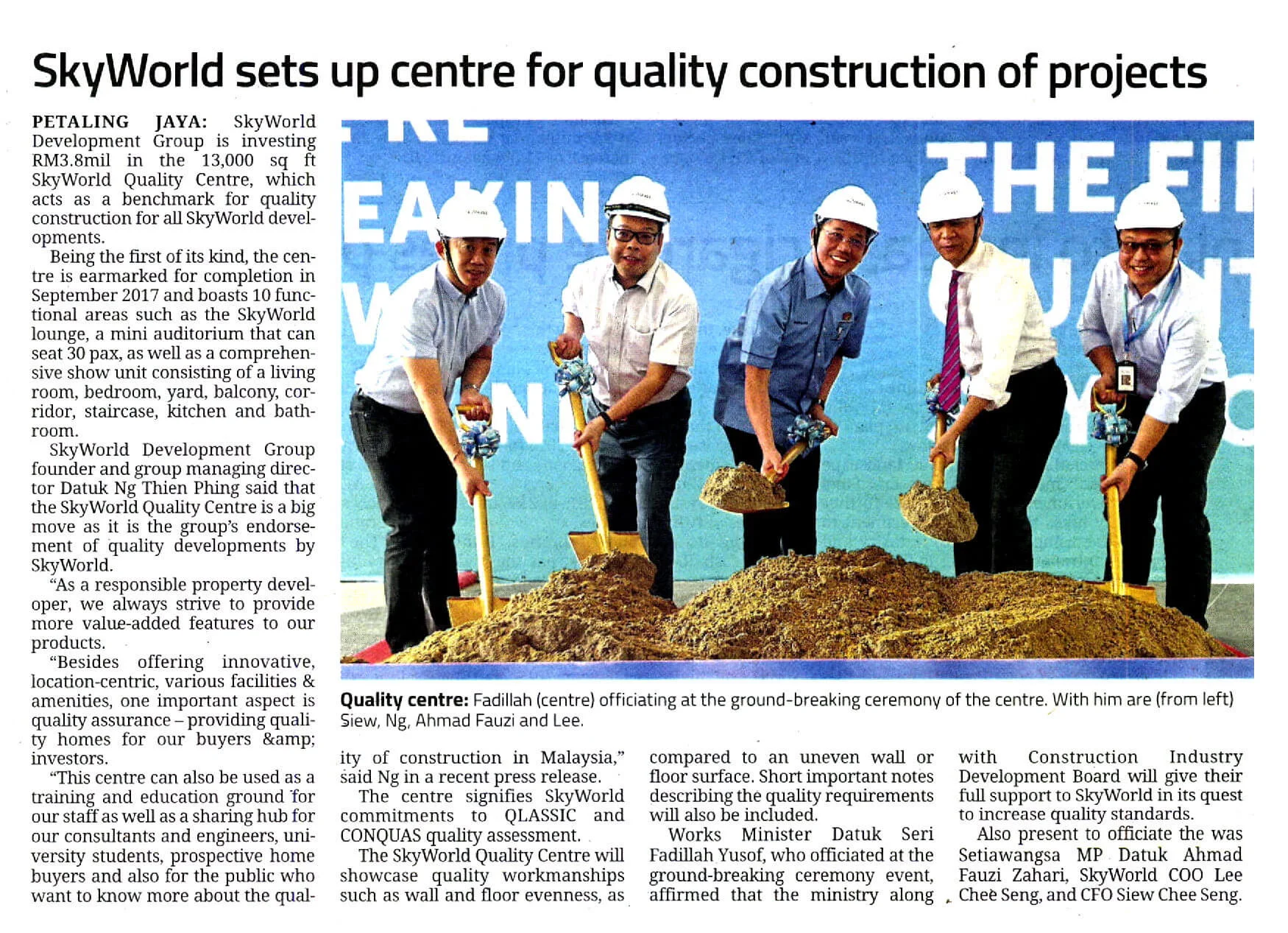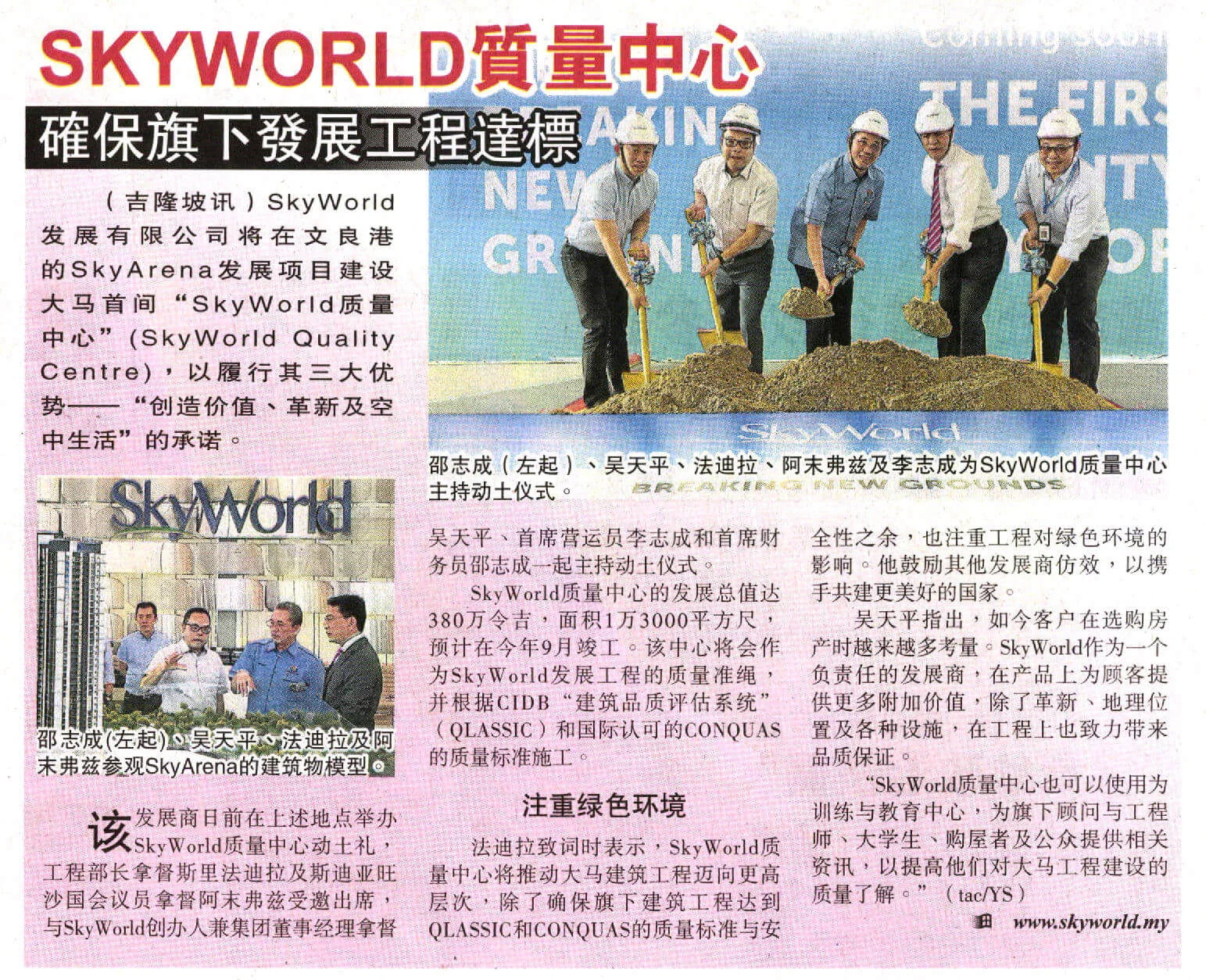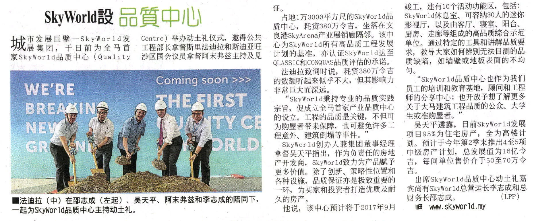 Ground Breaking Ceremony Of The First Quality Centre By SkyWorld In Malaysia