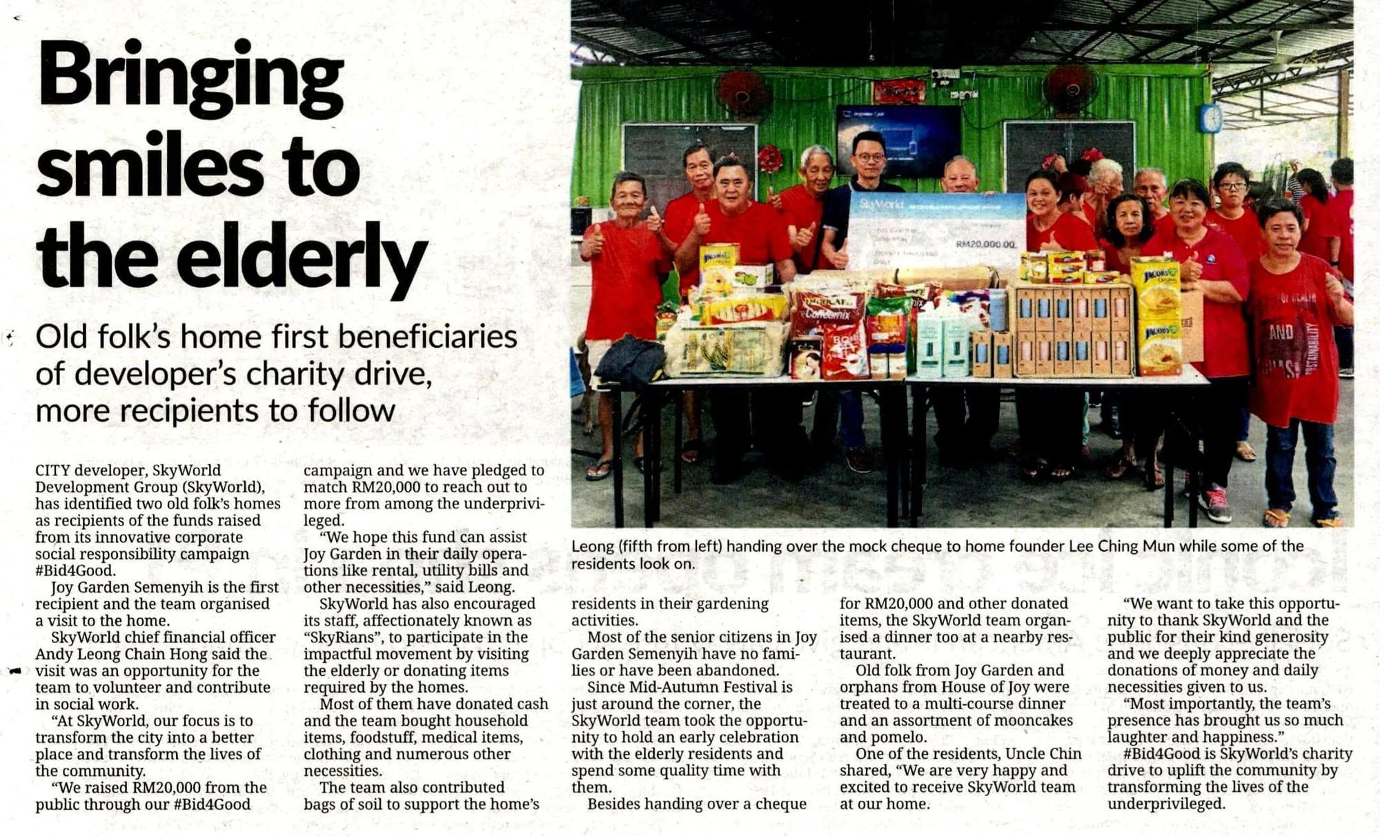 “This CSR initiative is a fun and innovative way of getting Malaysian citizens to support this cause. #Bid4Good campaign wouldn’t have been successful without the strong support from our staffs, business associates, purchasers and public. It is their kind generosity that has contributed to a successful campaign and my deepest appreciation goes out to each and every one of them. With the amount raised, we hope it can help them in their daily operations.” added Ng. The team has identified a few homes in Klang Valley and they will be paying the homes a visit. Once the list has been finalized, SkyWorld will organise a mock cheque presentation together with the selected homes.
