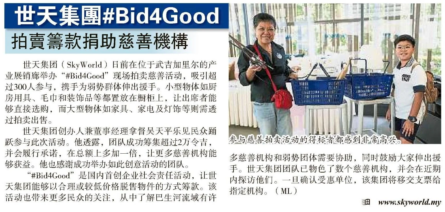 On 30 June 2019, SkyWorld Development Group has successfully conducted its #Bid4Good Live Bidding event at SkyWorld Property Gallery @ Bukit Jalil last Sunday. More than 300 participants, both young and old, joined this meaningful event in hope to raise funds for the less fortunate. Smaller items such as kitchen utensils, towels, deco items and clothing were purchased off the shelf whereas bulky items like furniture, appliances, rugs and lightings were purchased through bidding.