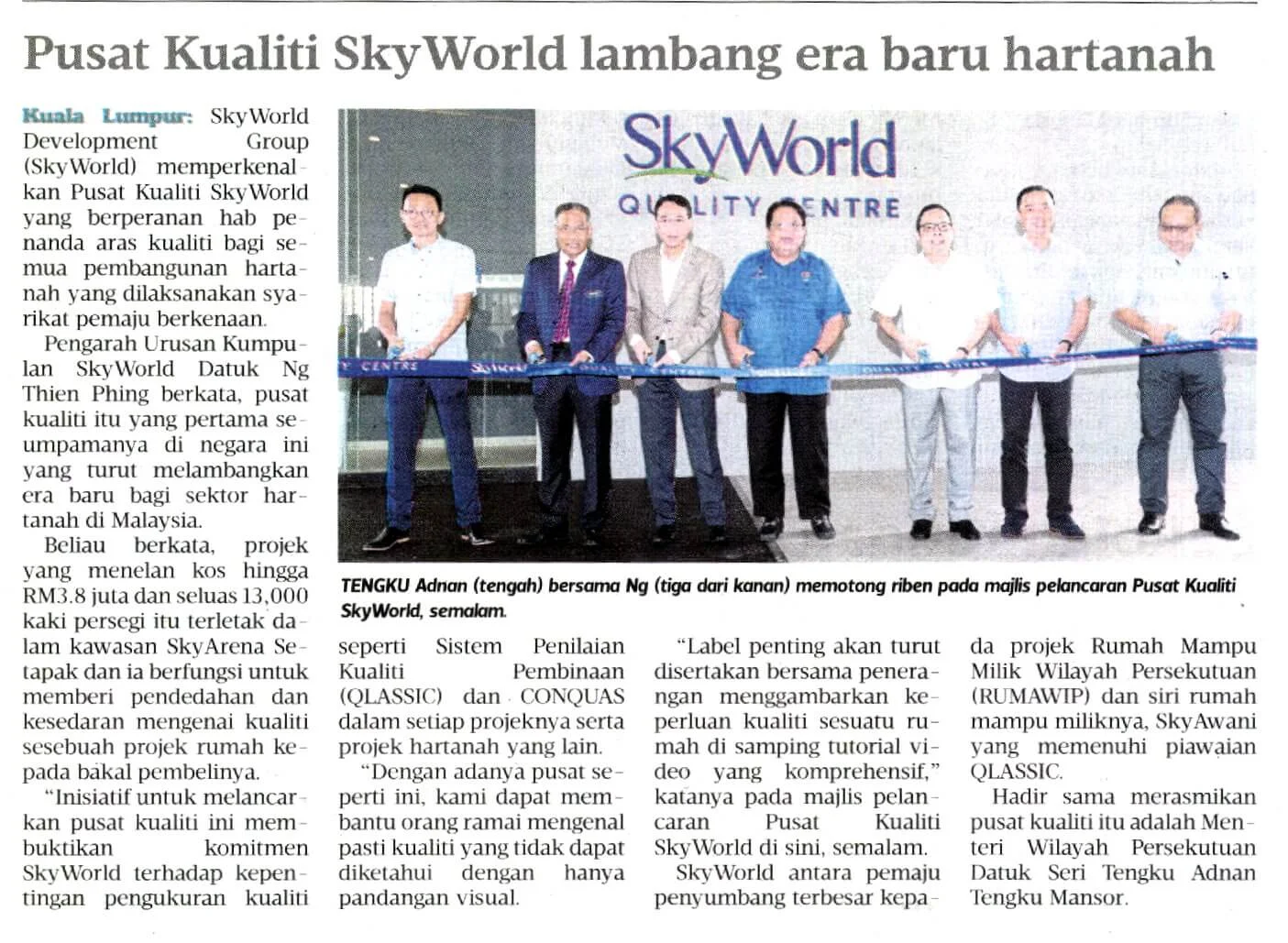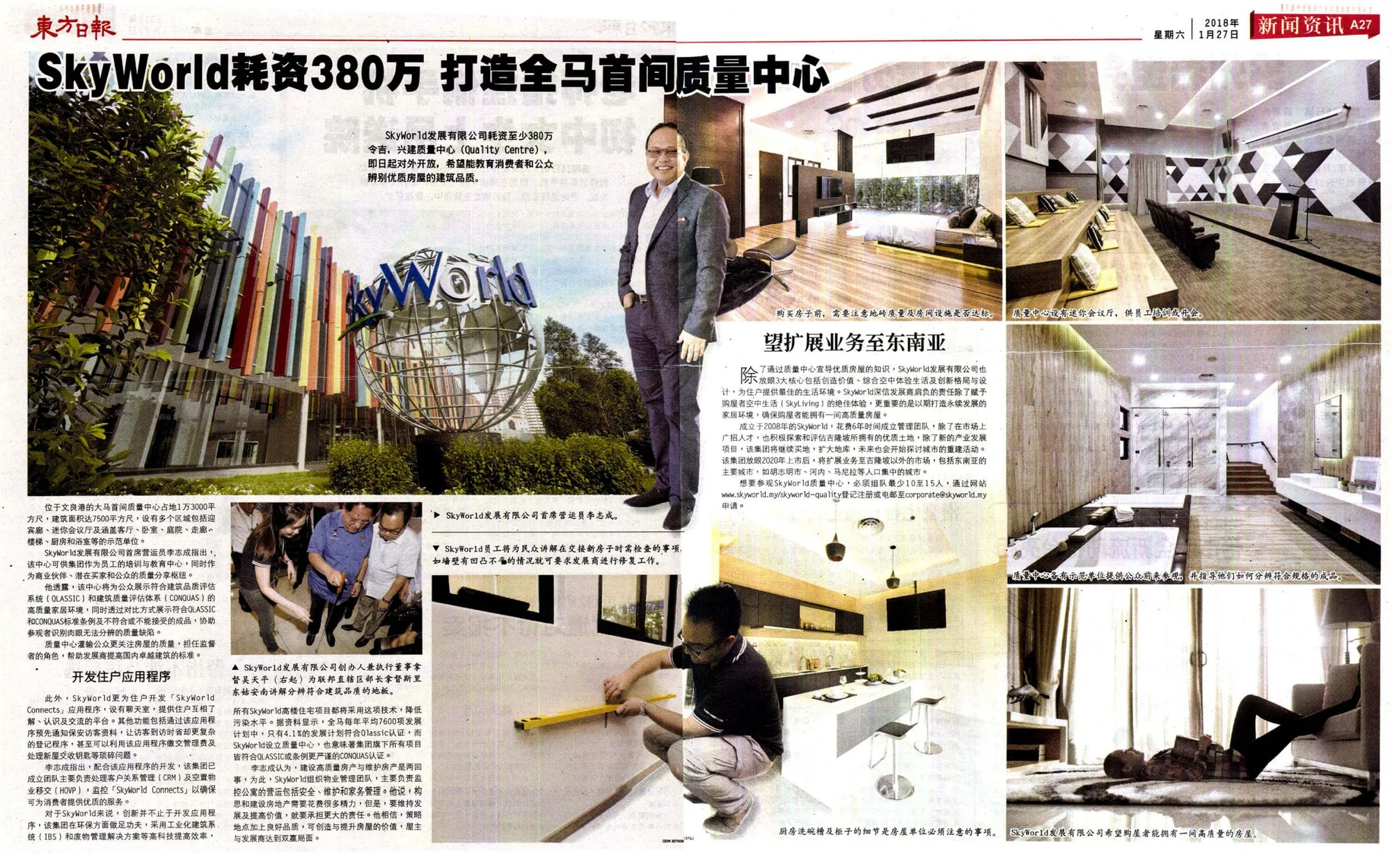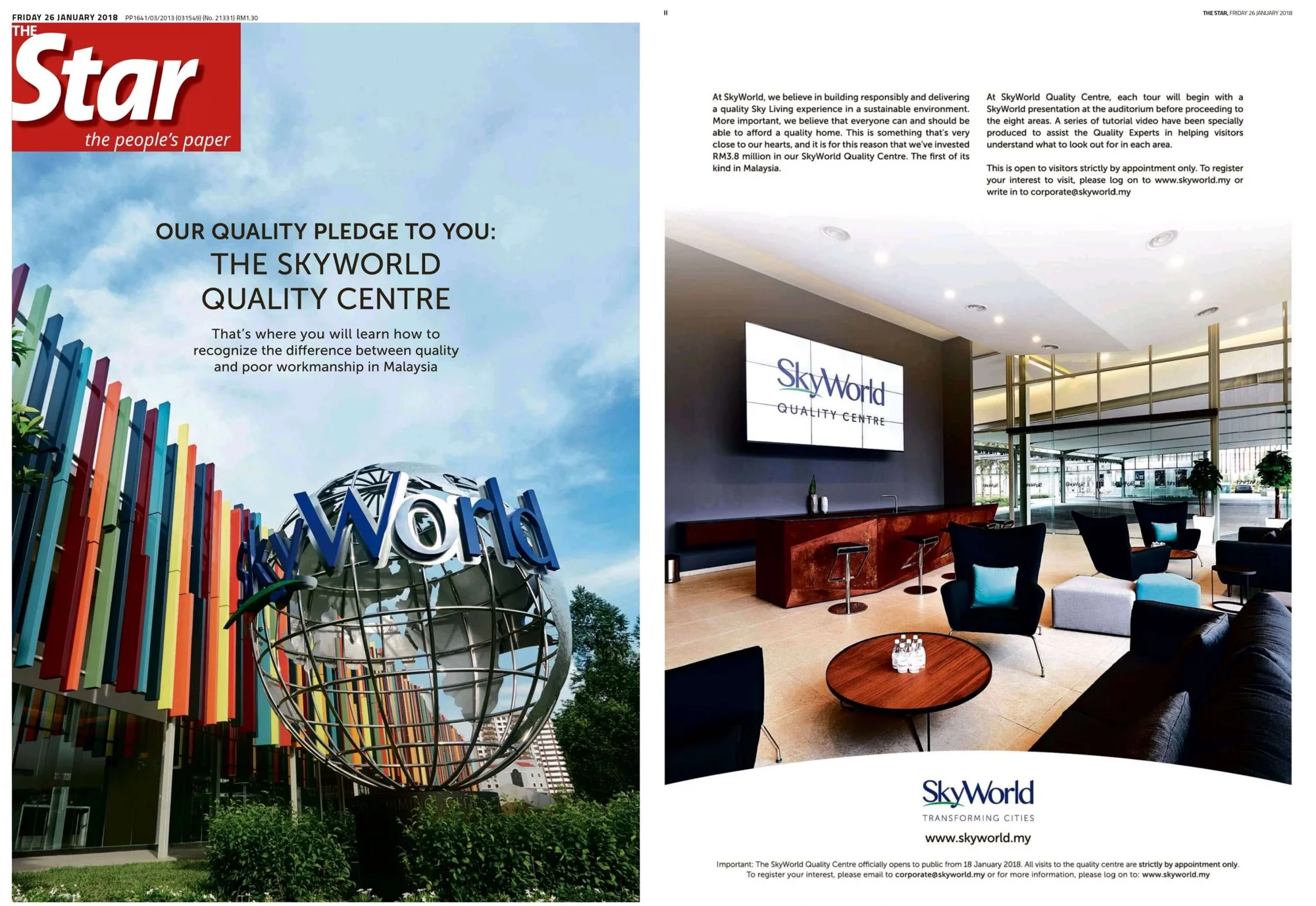 On 22 January 2018, SkyWorld finally unveiled the highly anticipated RM3.8 million SkyWorld Quality Centre, the first of its kind in Malaysia. The grand opening ceremony marked another important milestone for SkyWorld as it took the bold step of championing QLASSIC / CONQUAS quality commitments in all its developments in Kuala Lumpur. This event signified a new era in the property industry – cementing the SkyWorld Quality Centre as a quality benchmark in Malaysia. To visit the centre, kindly register at skyworld.my/skyworld-quality
