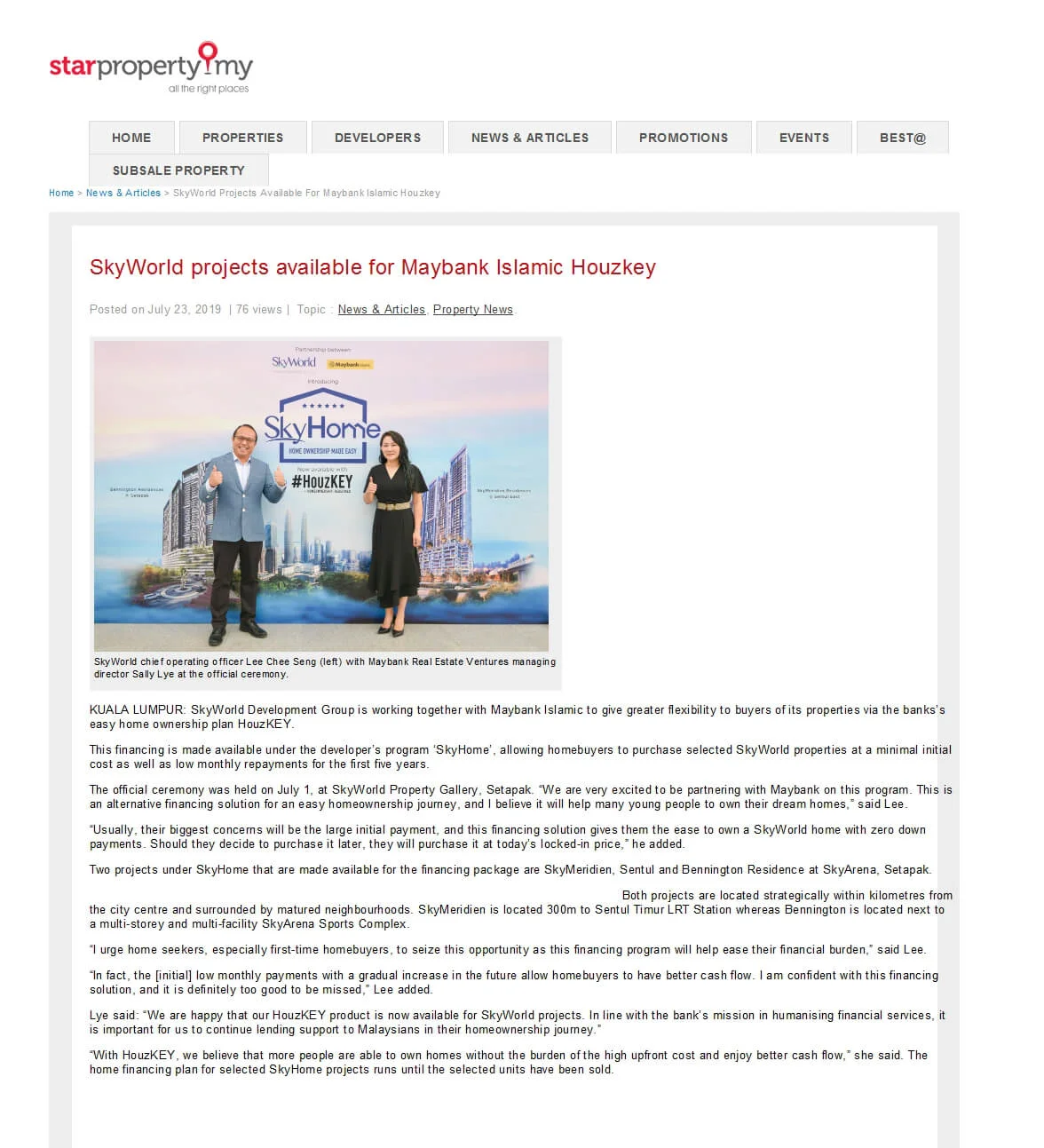 SkyWorld Projects Now Available For Maybank Islamic Houzkey