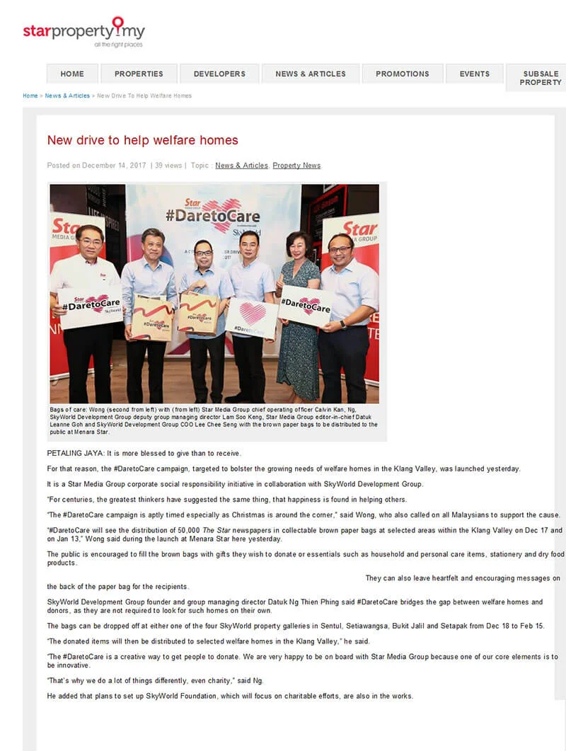 ‘Tis the season of joy, love and caring. To share the warmth of the festive season with the underprivileged and uplift the community, Star and SkyWorld joined forces to drive the #DaretoCare campaign. This innovative #DaretoCare campaign was created in hopes of boosting public awareness on the growing needs of underprivileged homes in the Klang Valley while encouraging fellow Malaysians and the public to lend a helping hand through a simple of act of donating.